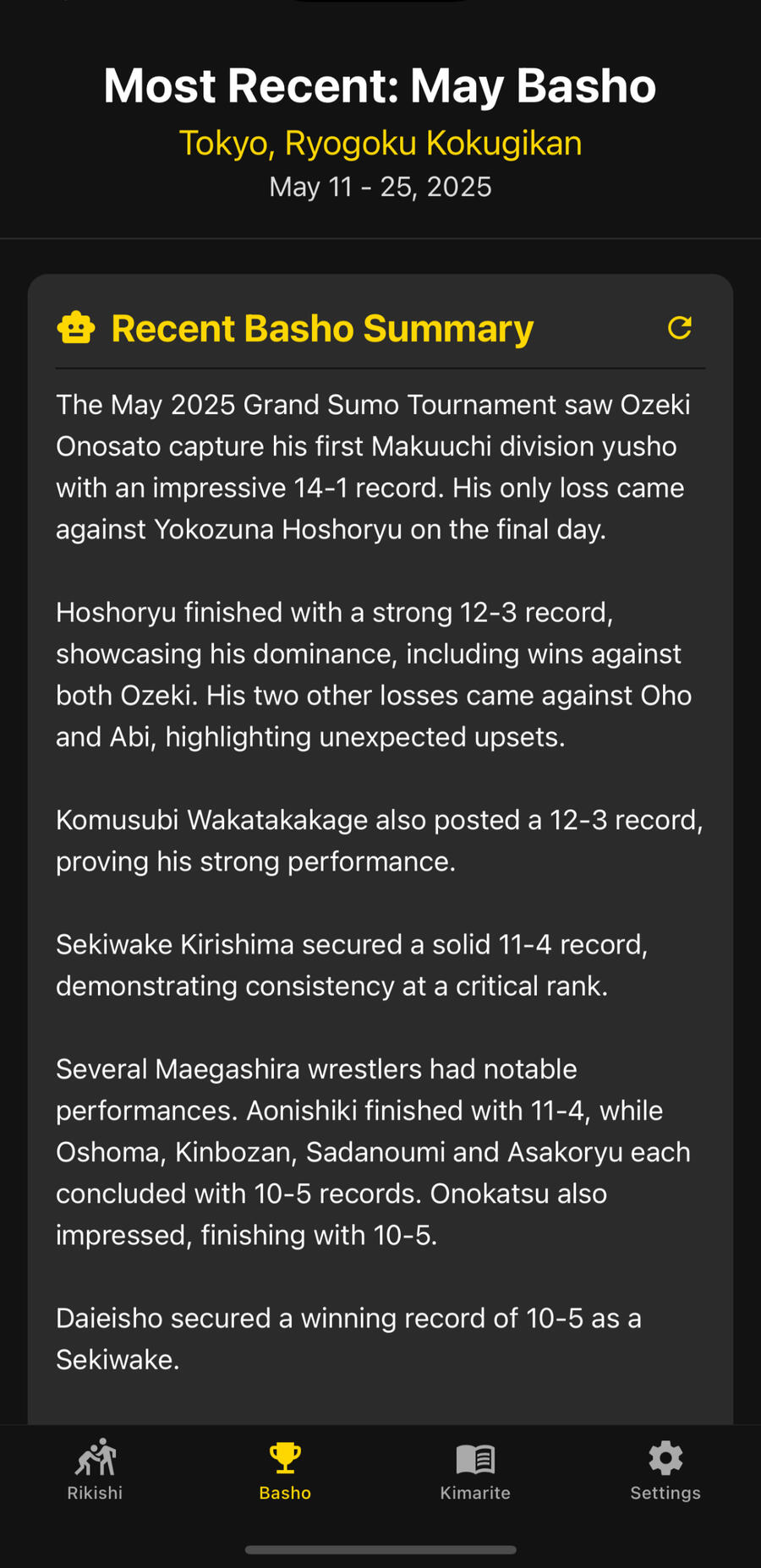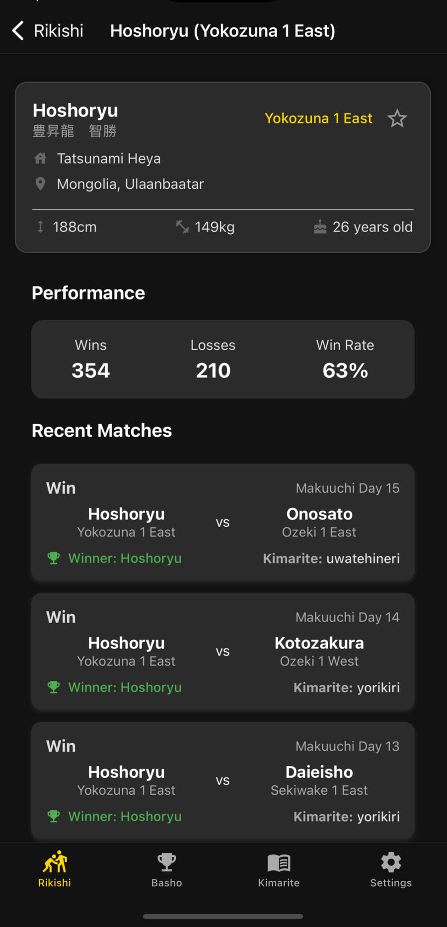 Get personalized updates from the latest Basho to follow your favorite Rikishi.